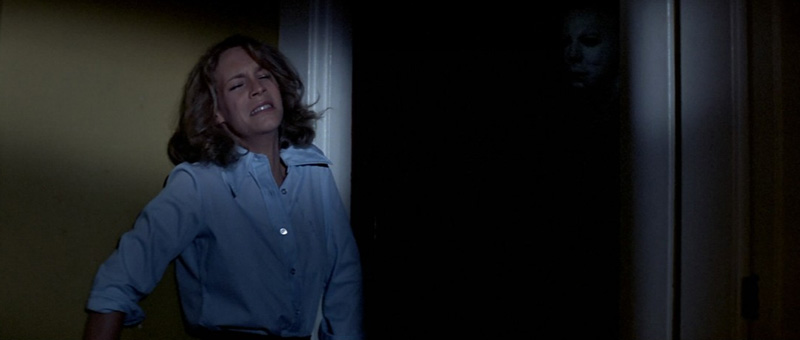 This film makes wide use of shock effects, as there are constant jump scares and shots that emphasize surprising the audience. Michael often pops out of the shadows, as shown in figure 2, making it so he is subjected to only the audience’s gaze and not the victim’s. This makes the audience feel the fear of the characters in the film as the audience becomes untrustworthy of every closet and dark corner.